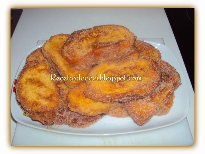 Transcurridas las 24 horas, el pan se pasa por huevo batido y se fríen con aceite de girasol, una vez fritos se rebozan con azúcar y,,,,,,,,,,,,,,,,,,,,,,,,, a Disfrutar de éste rico manjar......