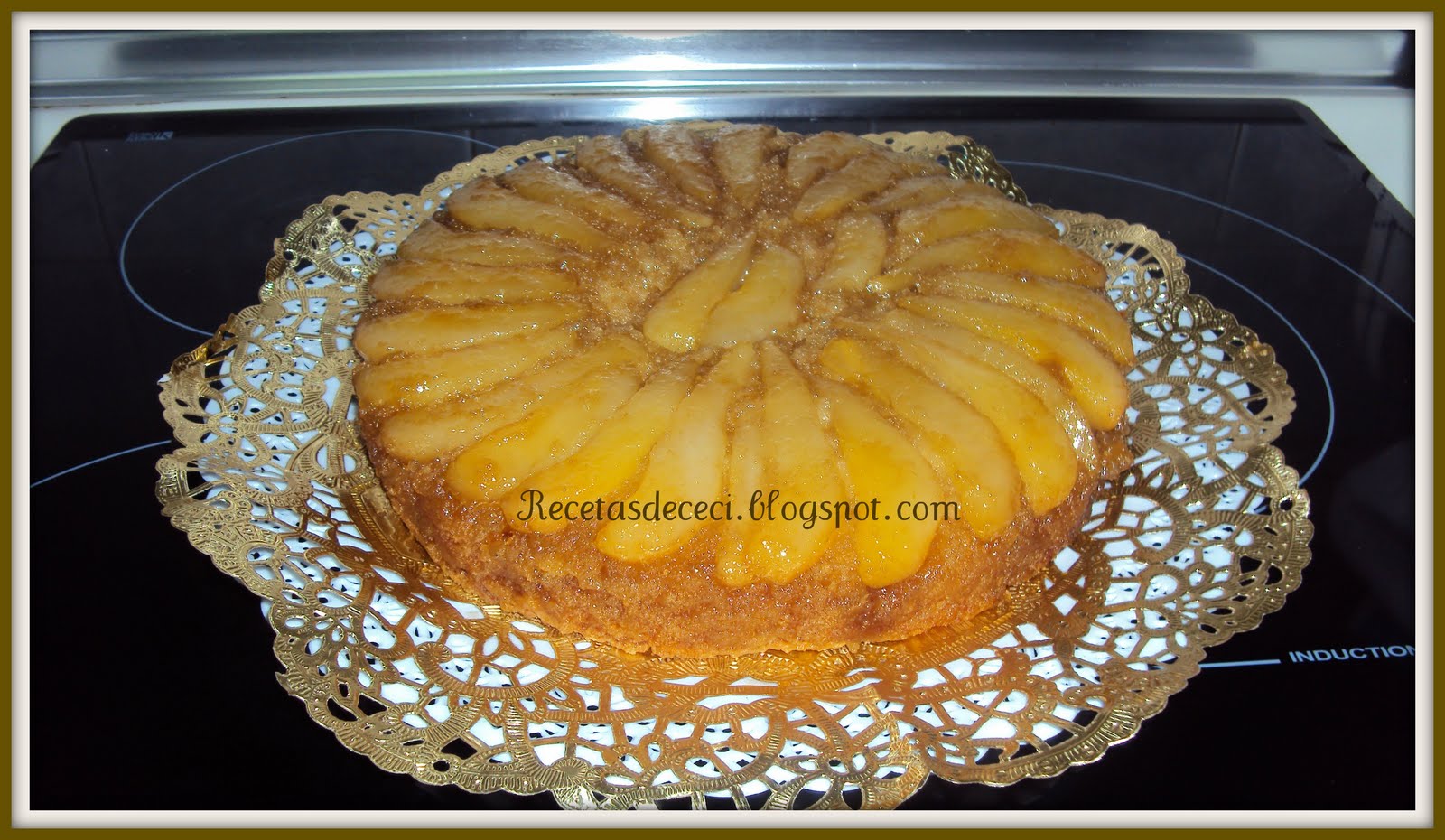 Poner encima las lonjas de las peras en forma armónica y espolvorear