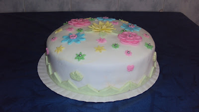 Para mi cuñada Pepa, le hacía ilusión que hiciera una tarta decorada en fondant,,,,,